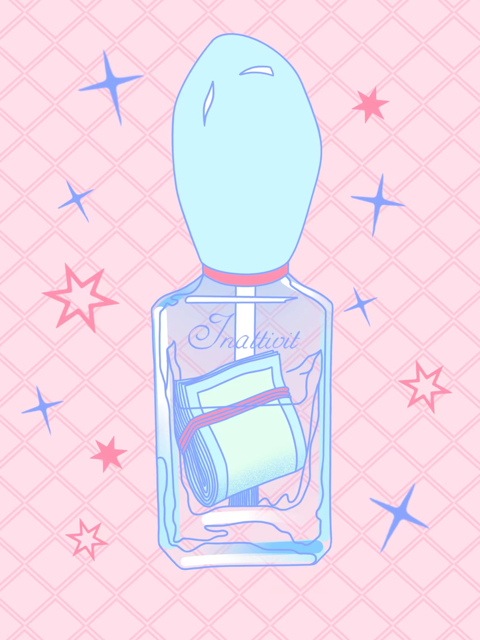 许多受到大众审美影响的女生为了迎合大众的审美一味追求“白”、“幼”、“瘦”过度节食,损害了自己的健康,但我认为女性的美应该是多种多样的,随着时代的发展,思想的不断进步与开放,人们当下的审美应该是多元化的。而不是一味地认为女孩皮肤白、身材苗条才是好看的,皮肤不白、身材肥胖则被视为不好看。香水作为女性用来打扮自己的物件,与女性有着紧密的联系。因此我在画面中使用香水瓶作为象征女性的符号。全系列采用的柔和配色象征着社会对女性甜美温柔的刻板印象。
