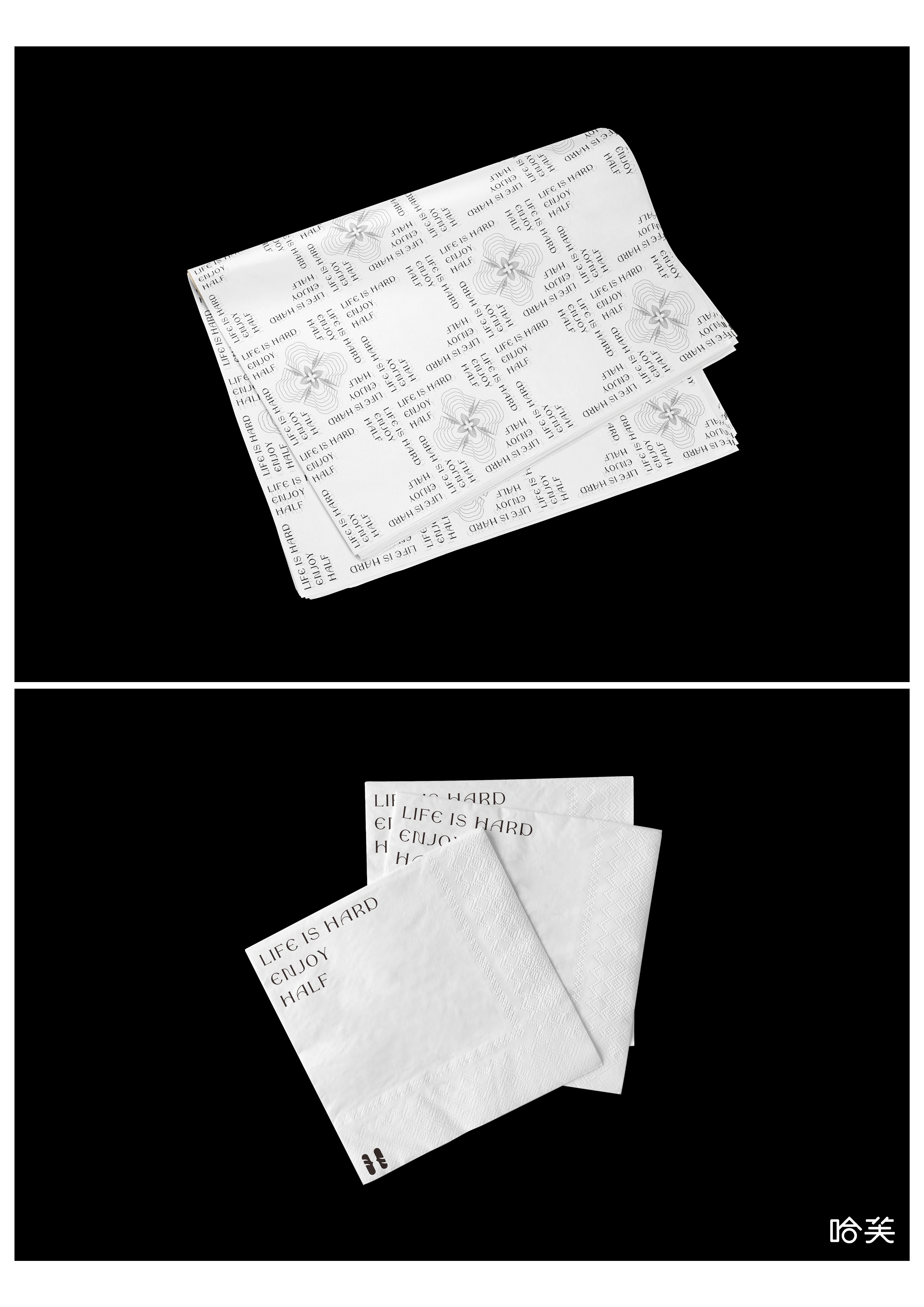 标志整体造型为英文字母“H”,正是品牌名的首字母。以面包图形作为核心元素,体现行业属性。品牌名为“Half”,又译为一半,品牌标志将面包图形放置左右各一半,围绕品牌核心理念。中文名称为“哈芙”,与“Half”谐音。品牌标准字体与标志的绘制上都使用了圆形,也保持了视觉上的一致性。
